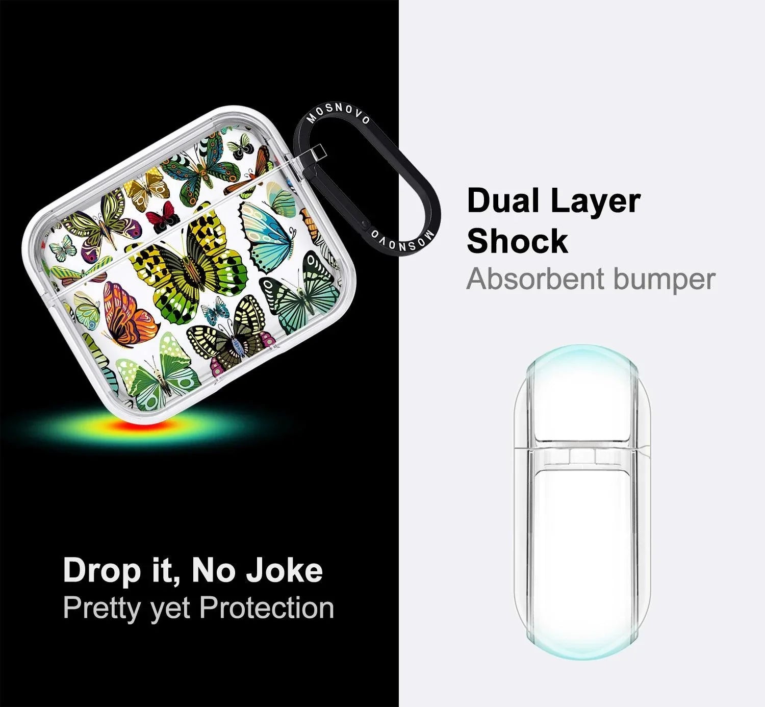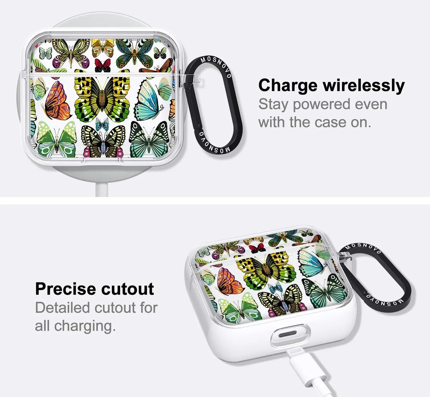Co-molded construction with a protective frame protects against impacts and drops and fits perfectly with AirPod 3